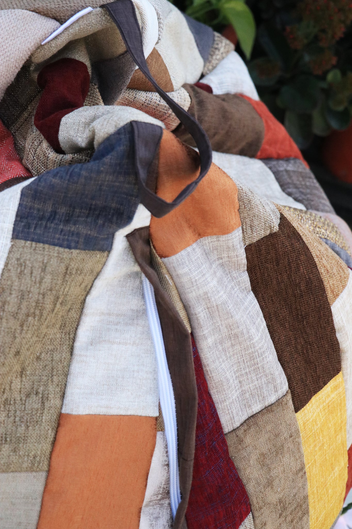 Each piece is made using curated reclaimed textiles, ensuring subtle tonal variation while maintaining collection cohesion.