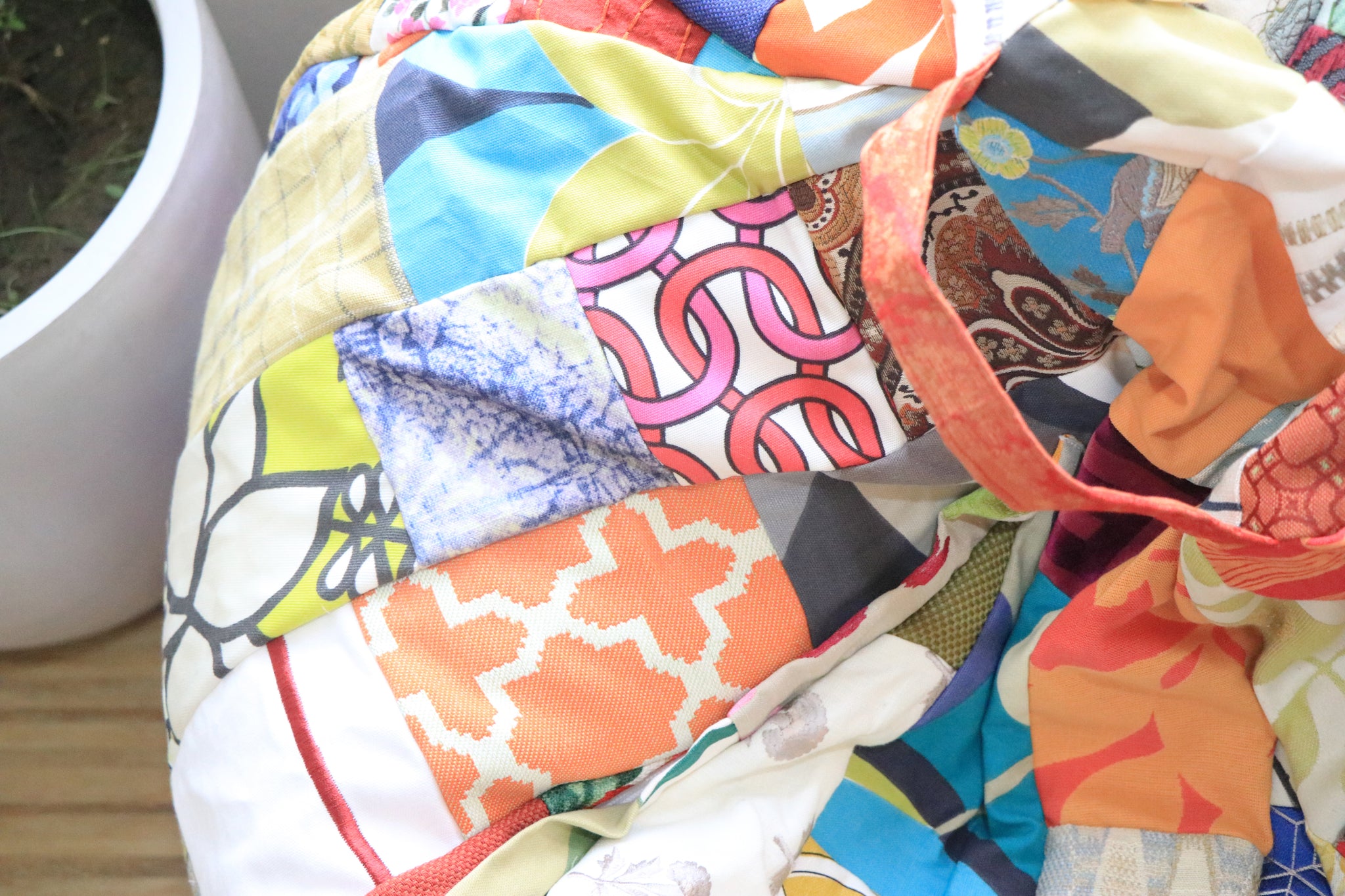 Each piece is made using curated reclaimed textiles, ensuring subtle tonal variation while maintaining collection cohesion.