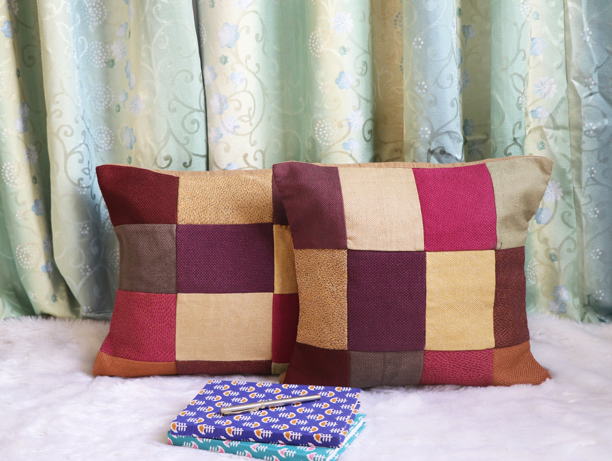 Here are some throw cushions add warmth and softness to your homes. These Patchworked Purple Cushion Cover have been made out of upholstery fabric which are highly durable. They are an attempt to add that bit of texture to your space while helping the environment in our small way.