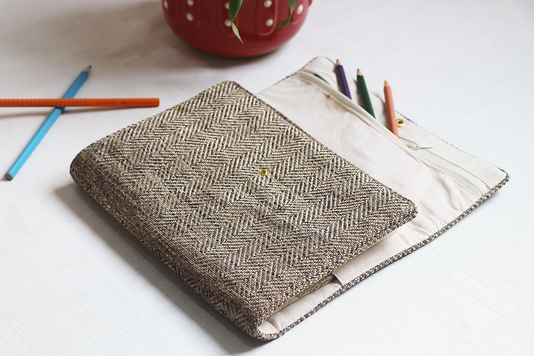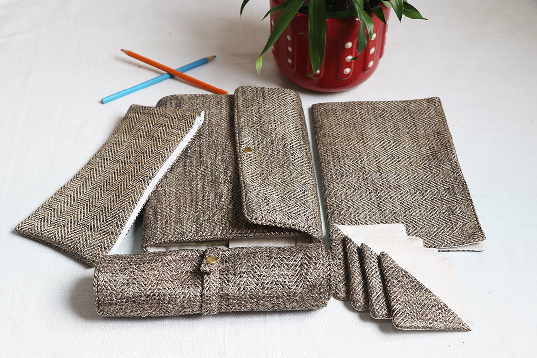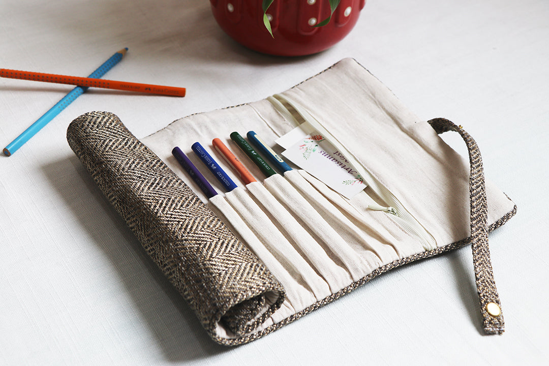 Roll Up Pen Case: This multipurpose pencase is a very versatile product which can be used by corporates for their daily pens and stationery, painters for their brushes, crochet needle holder for knitters, color pencils etc. It also comes with a zipper which can store any extra stationery like erasers, sharpeners, pen drives.