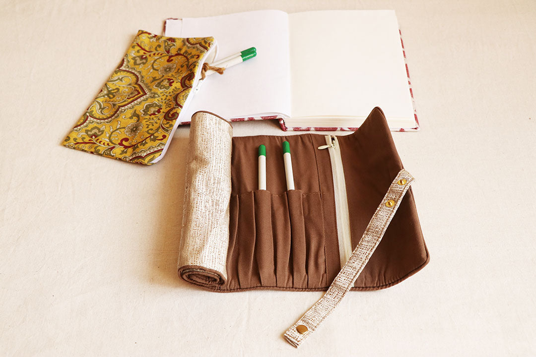 Roll Up Pen Case: This multipurpose pencase is a very versatile product which can be used by corporates for their daily pens and stationery, painters for their brushes, crochet needle holder for knitters, color pencils etc. It also comes with a zipper which can store any extra stationery like erasers, sharpeners, pen drives.