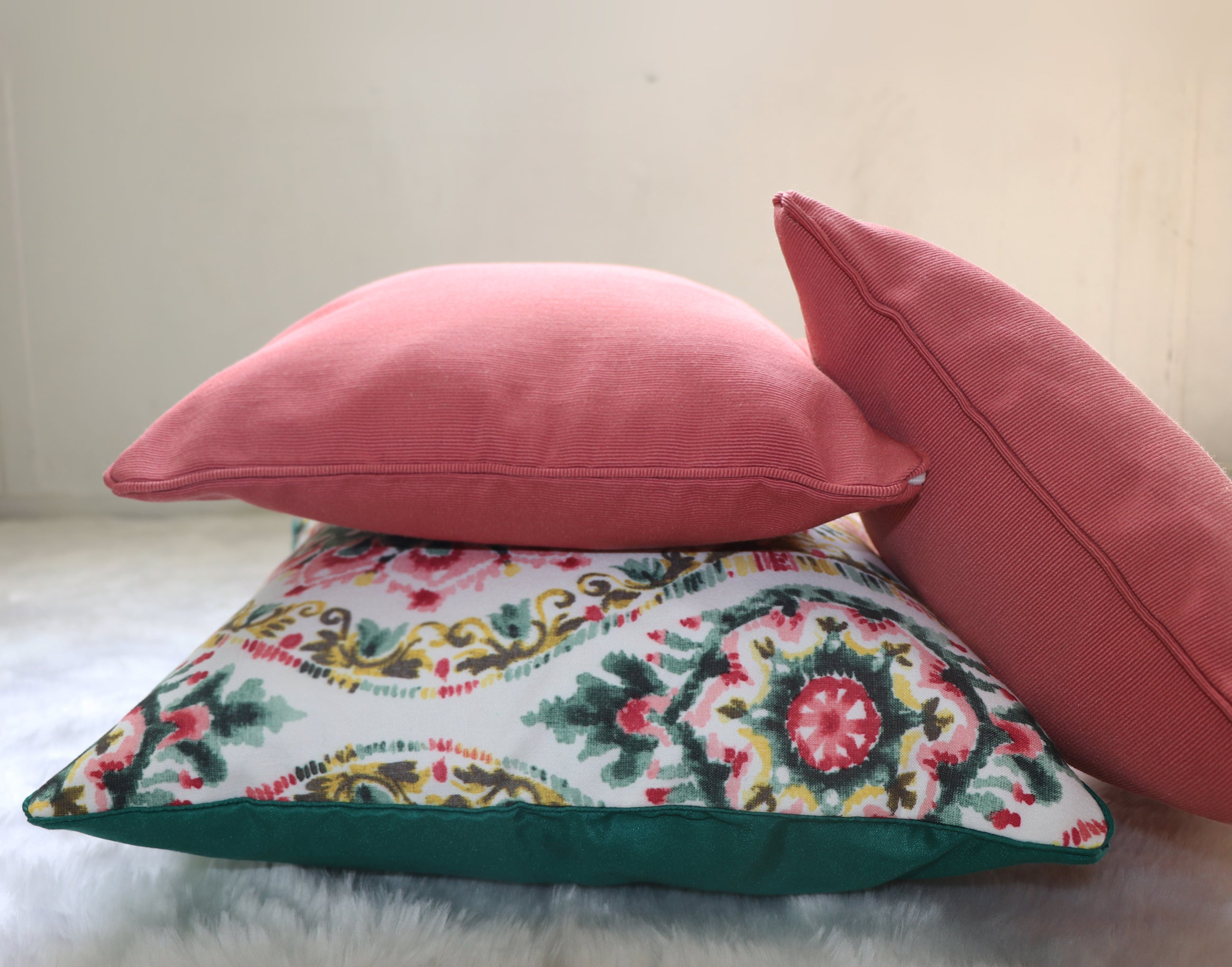 Multicolour Flora Dual Sided Pink Cushion Covers (Set Of 2)