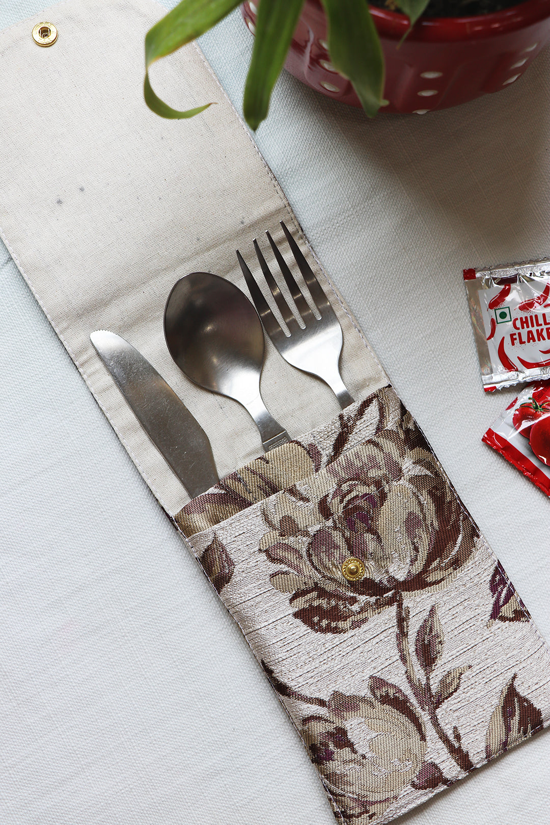 This multipurpose pouch is a storage case which can be used for stationery or cutlery while traveling.
