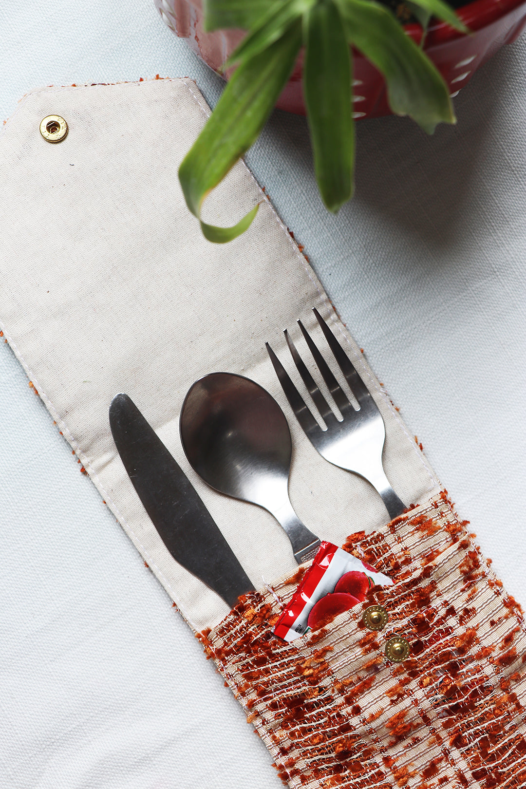 This multipurpose pouch is a storage case which can be used for stationery or cutlery while traveling.