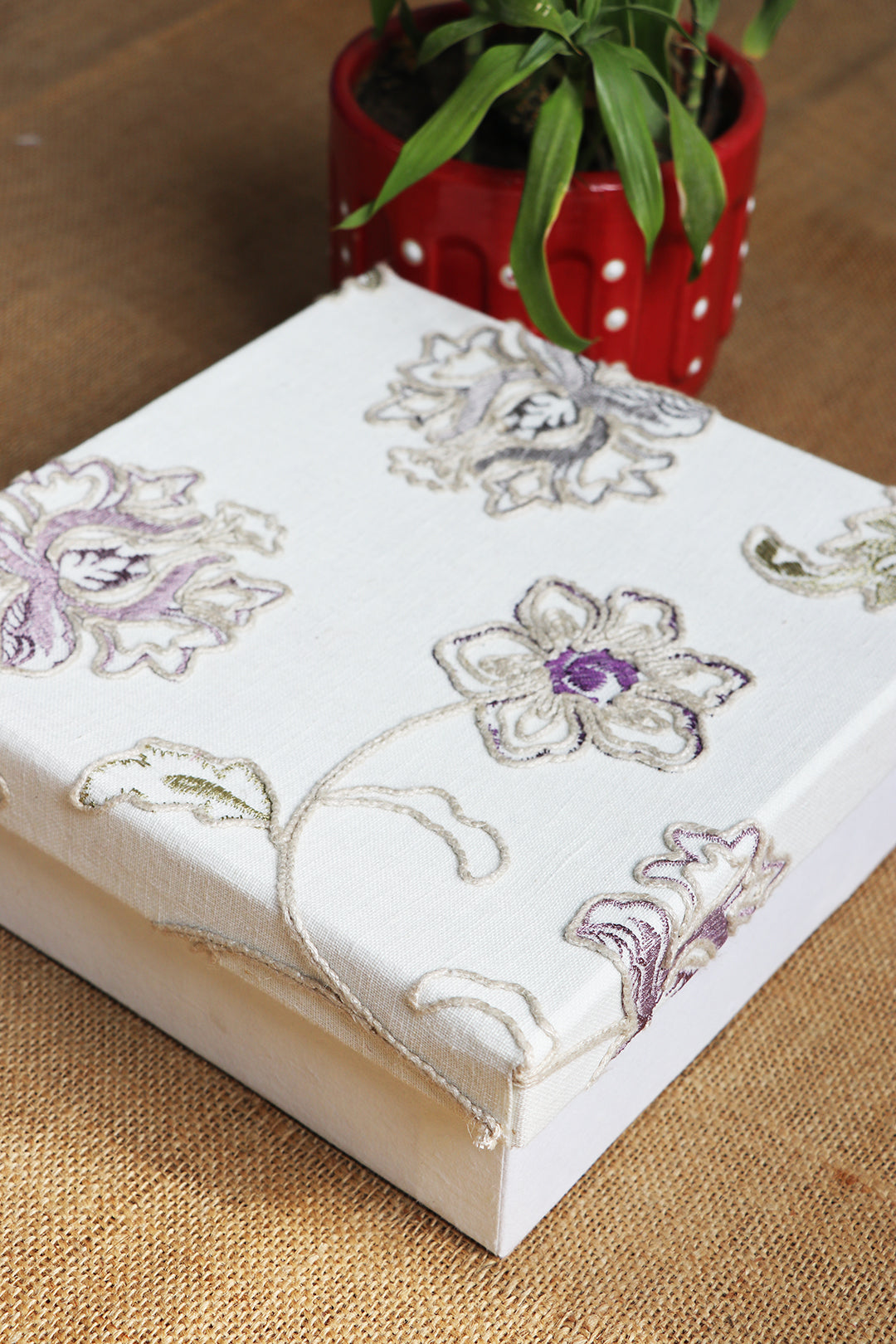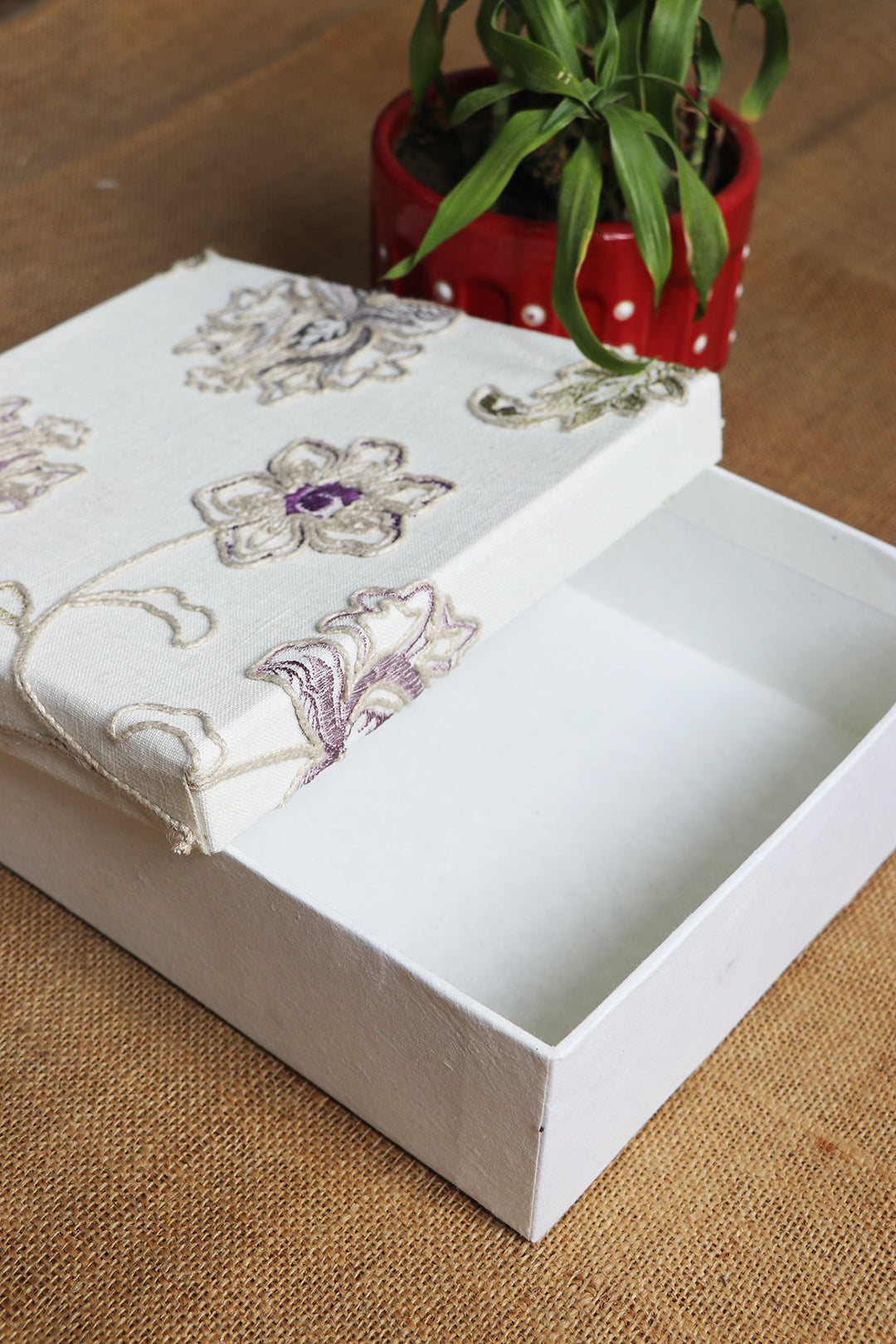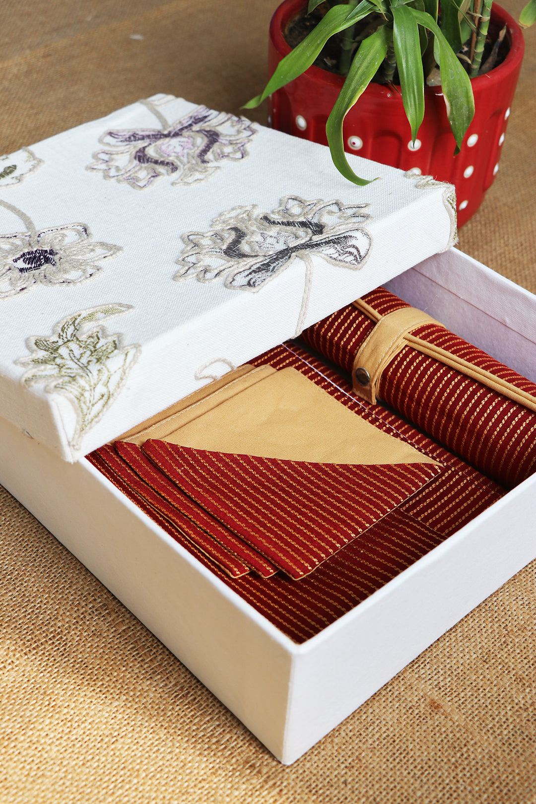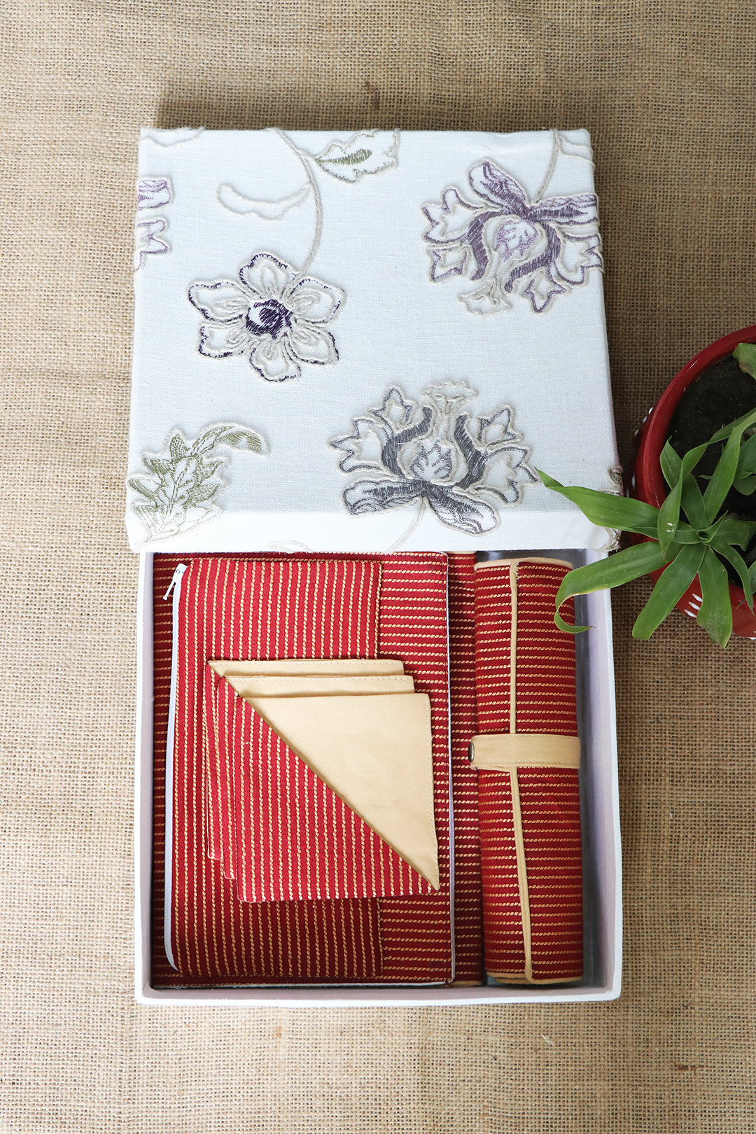 Gift Boxes can be customised according to size upholstered with preconsumed fabric pieces and handmade paper making your boxes sustainable, eco friendly and apt for corporate gifting.