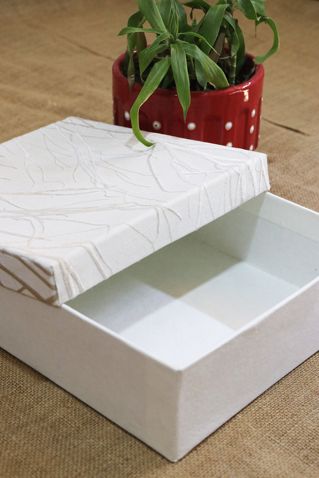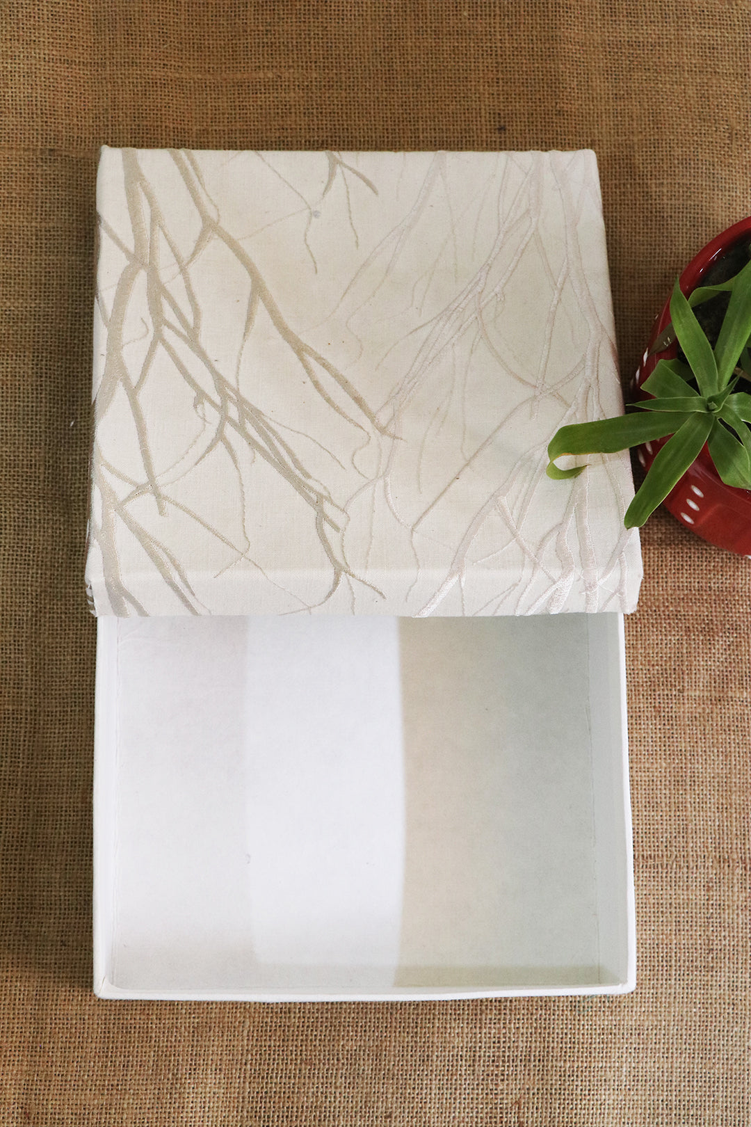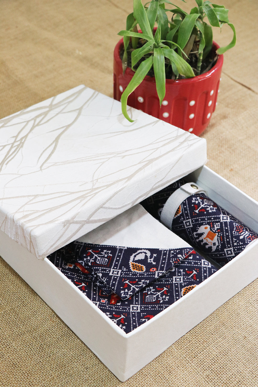 Gift Boxes can be customised according to size upholstered with preconsumed fabric pieces and handmade paper making your boxes sustainable, eco friendly and apt for corporate gifting.
