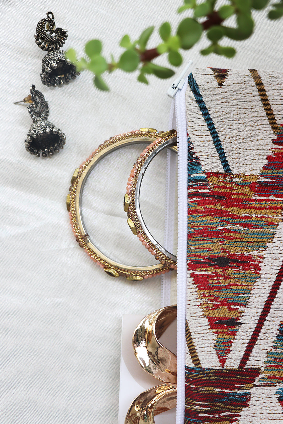 Your Bags are always less messy with segregated storage cases having make up items/ stationery/ jewelry etc. We created these multipurpose pouches out of these beautiful preconsumed fabric pieces to make daily life clutter free and more organized.
