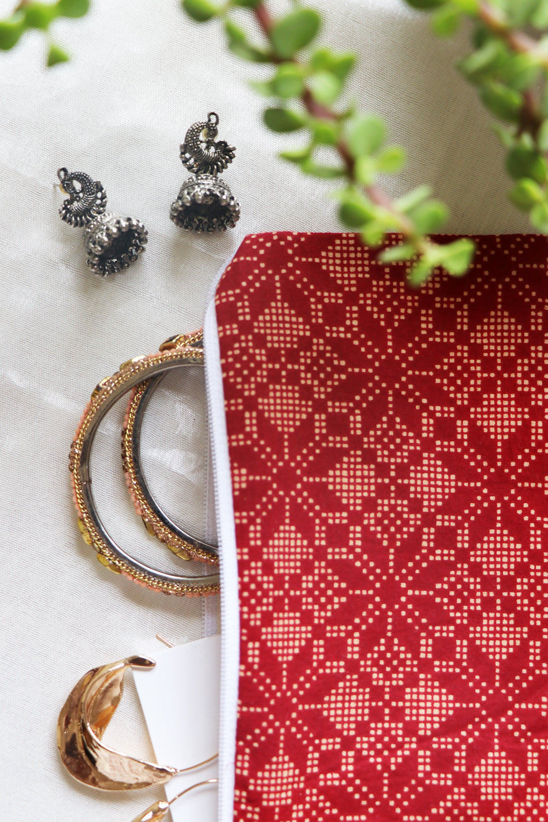 Your Bags are always less messy with segregated storage cases having make up items/ stationery/ jewelry etc. We created these multipurpose pouches out of these beautiful preconsumed fabric pieces to make daily life clutter free and more organized.
