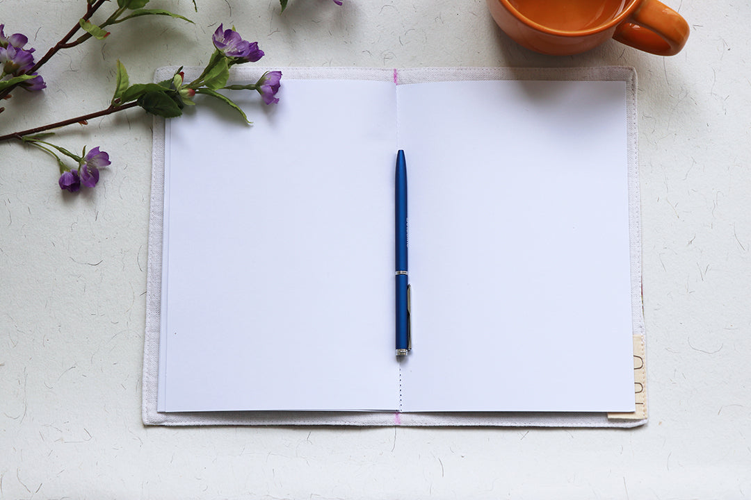 These notebooks are completely handmade. Writing your thoughts and ideas is the best way to treasure them. Our notebooks have been handmade with care, so you write to your heart's content. The covers on the notebooks are pre-consumed textile waste which would have otherwise ended up in landfills polluting our mother earth.