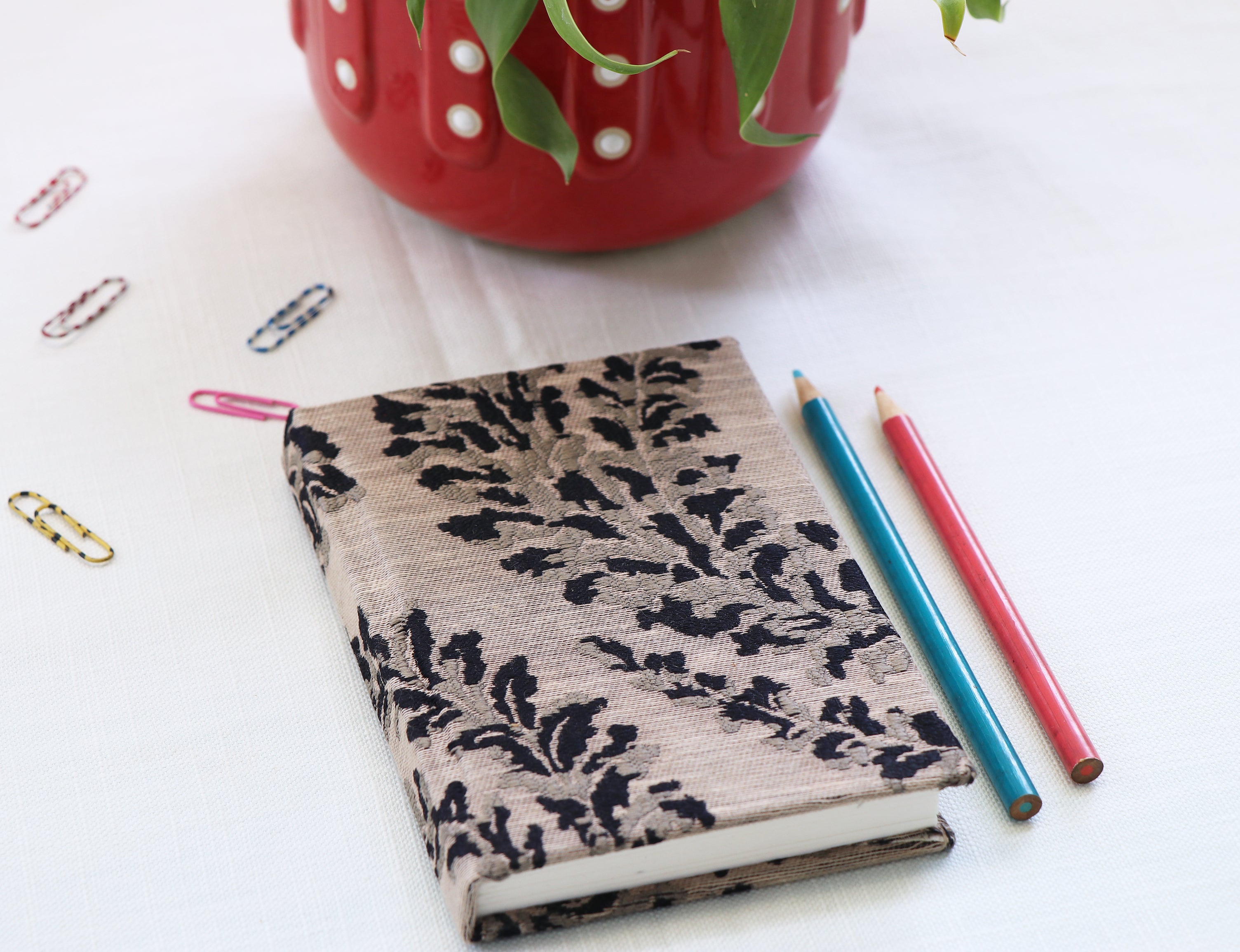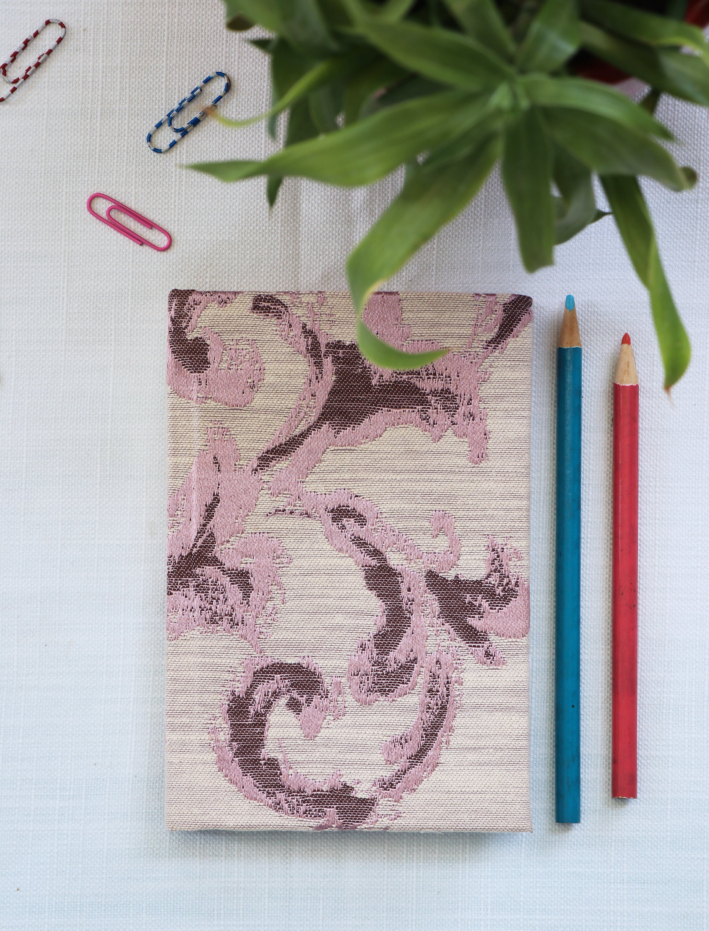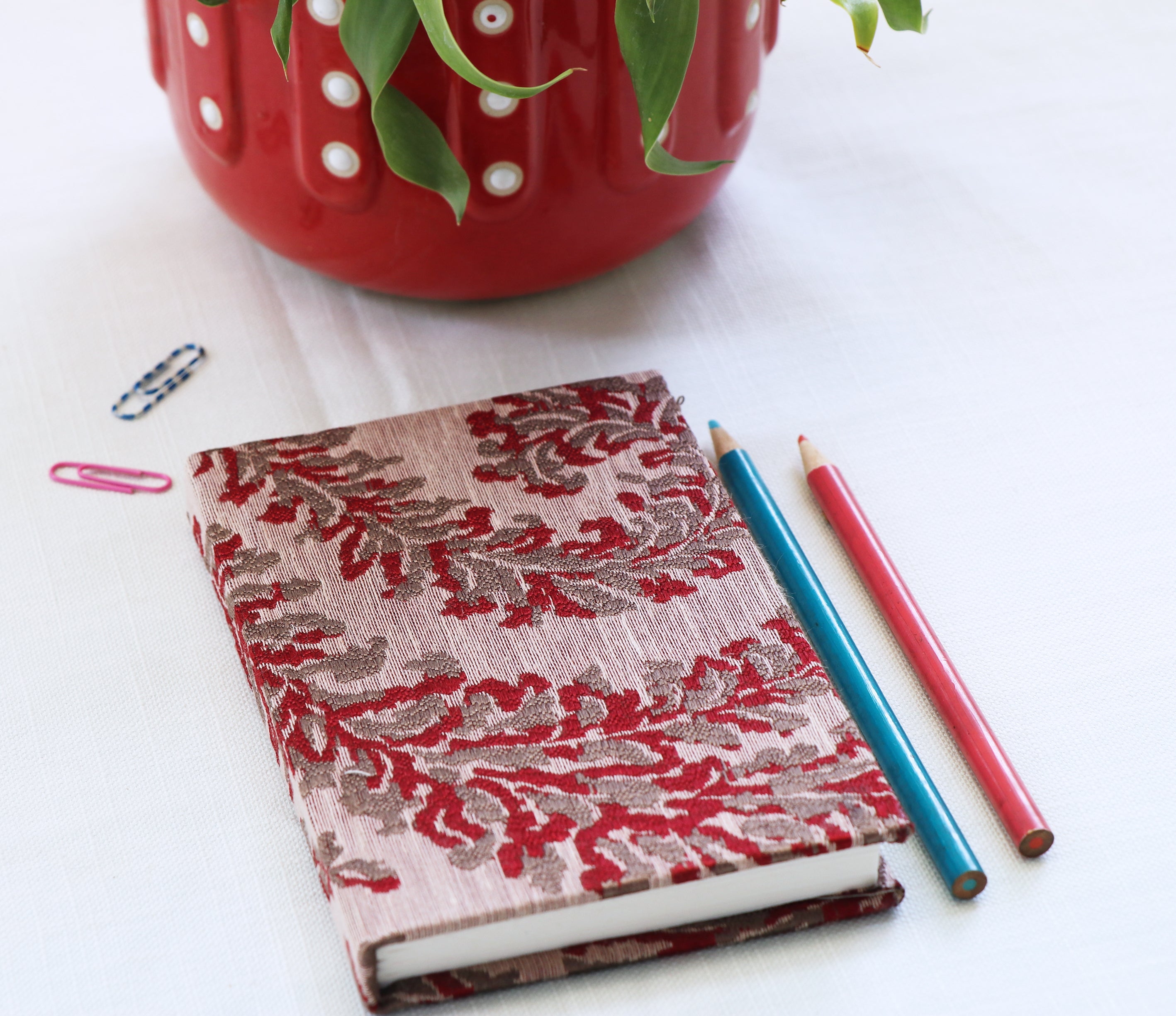 Stationery Kit | Yellow Block Printed Multipurpose Case | Red Kalamkari Roll Up-Pencil Case | Brown Spiral Notebook | Set Of 3